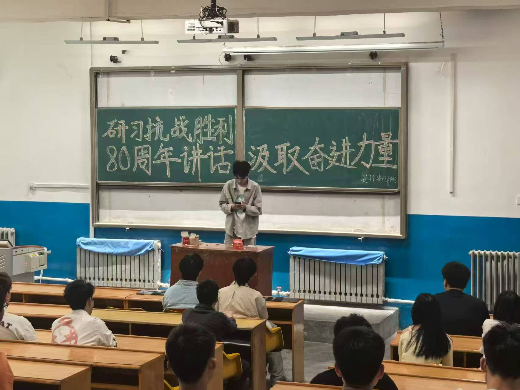 为了全面提高同学们的思想政治意识,我院于2025年9月17日召开了“研习抗战胜利80周年讲话,让青春在奋进中绽放”的主题教育活动,并由各班团支书组织开展,深入学习80年前的先辈们的奋进精神。