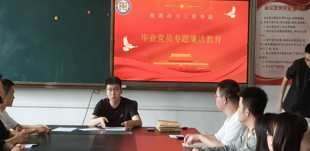在2025届毕业生即将扬帆启航、奔赴人生新征程之际,为引导毕业党员坚定理想信念、严守纪律规矩、扣好廉洁从业的“第一粒扣子”,能源动力工程学院于6月17日组织开展了毕业党员专题廉洁教育活动。此次活动旨在为即将步入社会的毕业生党员上好离校前的“最后一堂思政课”,筑牢拒腐防变的思想道德防线。