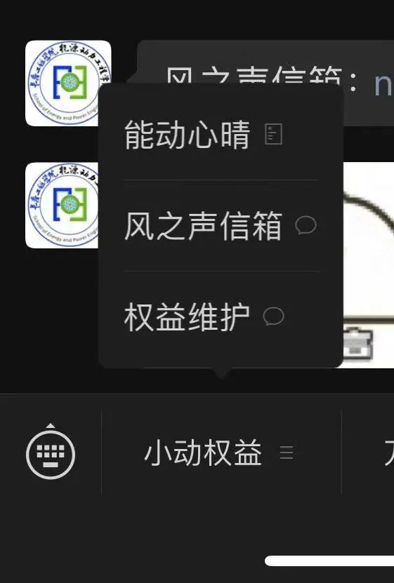 在长工程能动官微公众号内 “小动权益”菜单中的 “风之声信箱” 写出最近发生在你身边的困难 我们会及时统计 并汇报给老师 来解决此类问题 让我们成为你的“小动嘴替” 无论是遇到的歪风邪气 还是存在的困难 亦或是美文投稿 我们统统来者不拒