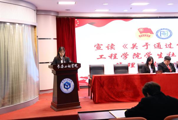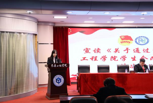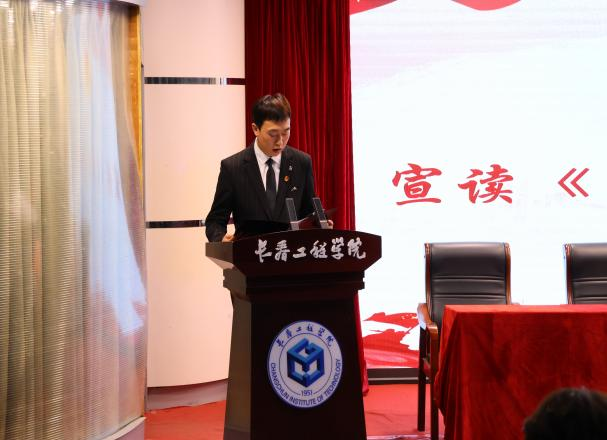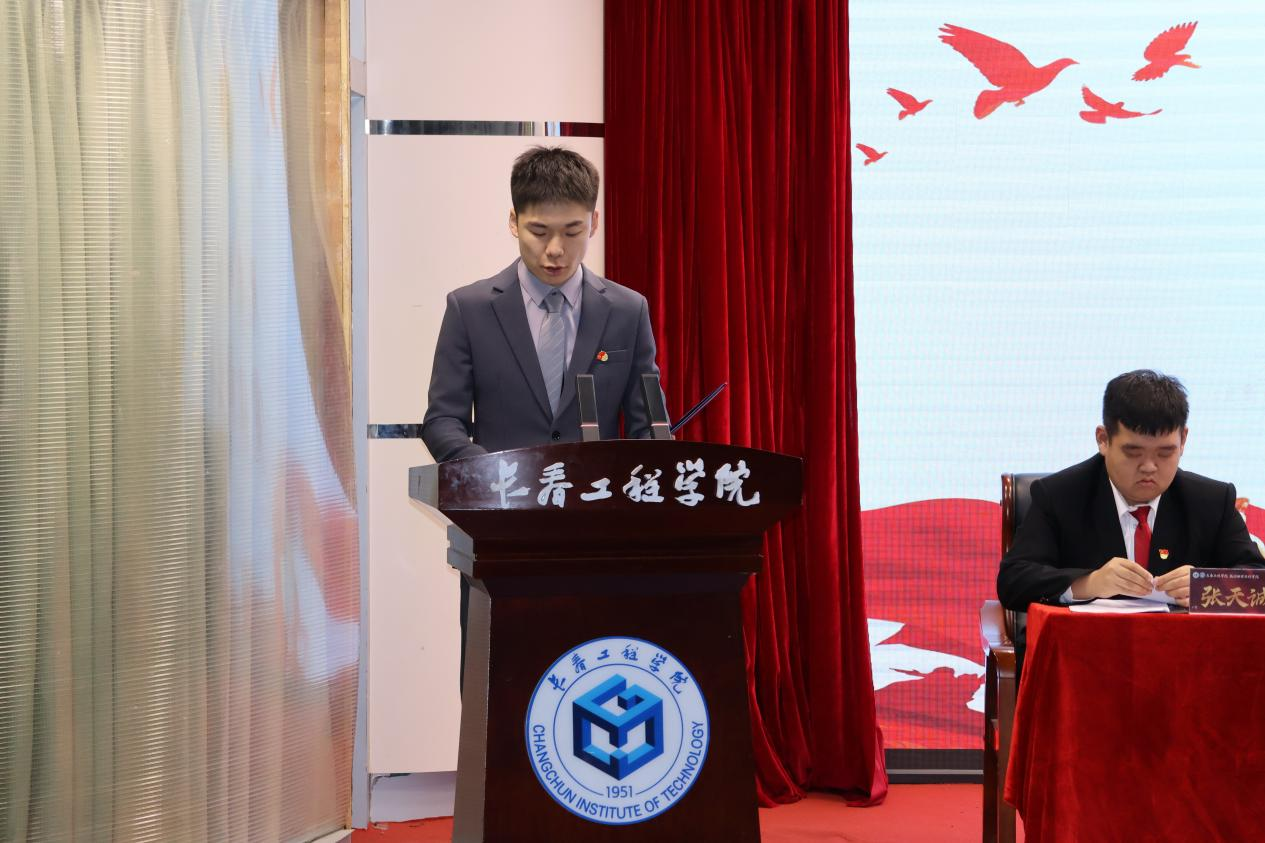 土木工程学院第二十五届学生会执行主席刘雨泉宣读群团组织贺词