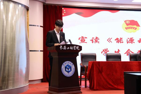 学院党委副书记石蕊宣读《大会倡议书》。在宣读过程中,她鼓励同学们勇于攀登学术的高峰,不断探索知识的边界,追求科学真理的极致,将理论知识与实际操作紧密结合,以实际行动检验学习成果,真正做到知行合一。期望每一位同学都能将个人的理想追求与国家的能源事业发展紧密相连,将个人的成长进步融入到国家繁荣昌盛的大局之中。