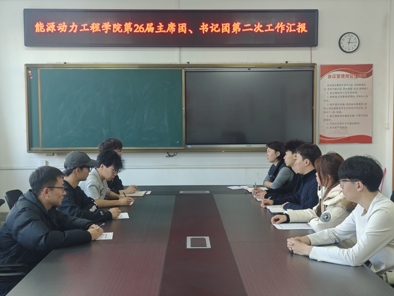 2025年11月13日,能源动力工程学院第二十六届学生组织主席团、书记团第二次工作会议顺利举行,团委书记于思文老师与全体成员参会,复盘近期活动成效,明确后续工作方向。会上,成员们依次汇报工作:近期统筹开展禁烟宣传、反诈科普等公益活动,筑牢校园安全防线;组织各班级有序推进主题班会,强化思想引领与班风建设;参加校园体质健康测试比赛,助力学子强健体魄,各项活动均取得良好成效。同时,大家也围绕活动形式创新、部门协同效率等问题展开交流探讨。
