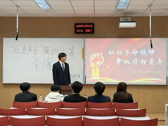 2025年12月1日,能源动力工程学院“红色声音”演讲比赛初赛在第七教学楼7505教室顺利举办。赛事以红色为主旋律,充分展现能动学子坚定的理想信念与勇担使命的青春风采。