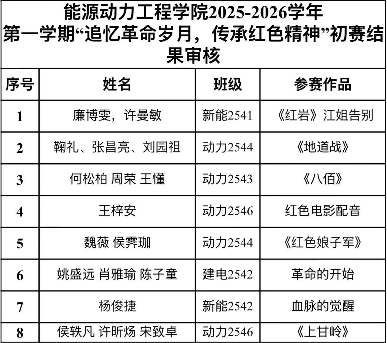 在本次活动中初赛的圆满落幕,是对前期筹备与参赛选手努力的肯定,也是红色精神传播的新起点。后续,愿晋级选手能继续打磨作品、精进技艺,在决赛舞台上呈现更精彩的红色演绎。能源动力工程学院也将以此次大赛为契机,持续深耕红色文化育人实践,推出更多沉浸式、互动性的红色主题活动,引导广大青年学生在回望历史中坚定信念,在传承精神中勇毅前行,让红色血脉在青春岁月中代代相传,让革命精神在新时代绽放新的光彩!