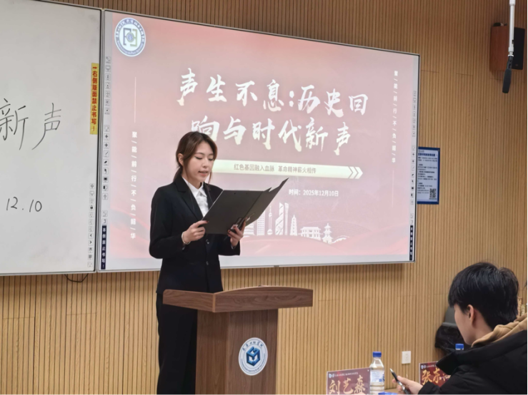 2025年12月10日,能源动力工程学院“声生不息”演讲比赛决赛在第七教学楼7505教室圆满落幕。学院学子以声为媒,传递红色信仰的磅礴力量,用青春之声奏响新时代青年的奋进强音。