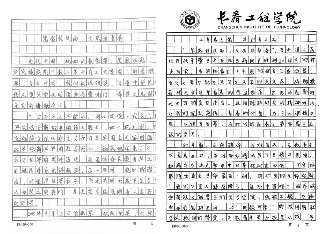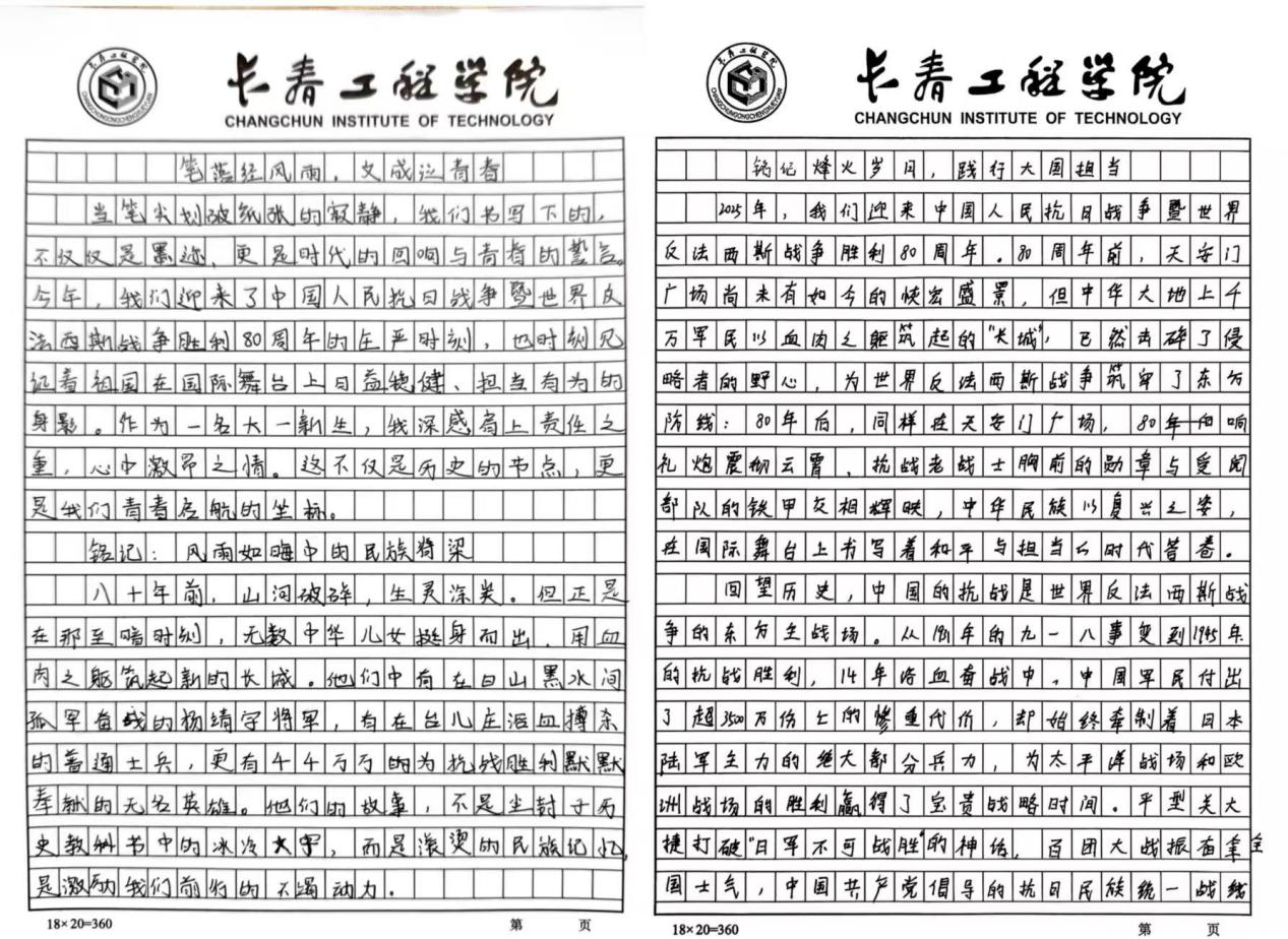 此次征文活动是校园文化建设的重要组成,亦是思想教育与历史传承的生动实践。相信通过此次活动,抗战精神将在校园中持续传承弘扬,爱国情怀将转化为学子们奋发向上的不竭动力,激励更多青年以笔墨记录时代、以行动践行担当,在新征程上书写属于新时代青年的青春华章。