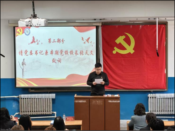 伴随着庄严雄浑的中华人民共和国国歌,本次党校开班典礼正式拉开帷幕。学院党委书记、党校校长张天文发表讲话,他指出,本次党校培训的核心目的是全面提升入党积极分子的政治素养、理论水平与党性修养,完全契合新时代党和国家事业发展对党员及入党积极分子提出的更高标准、更严要求。同时他勉励学员们要将强化党性修养作为终身必修课,以扎实的理论学习为成长进步注入动力,以持续提升政治素养为前行之路指明方向,务必珍惜此次难得的学习机会,不断提升自身综合素质。